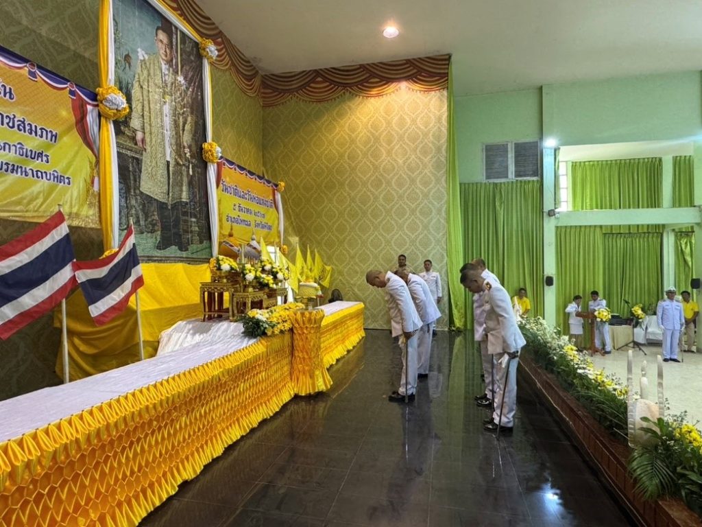 เข้าร่วมพิธีเจริญพระพุทธมนต์และทำบุญตักบาตรถวายพระราชกุศลและพิธีวางพานพุ่มดอกไม้ถวายราชสดุดี