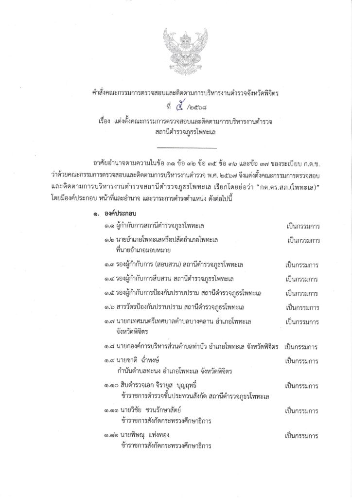 ผลการดำเนินงาน คณะกรรมการตรวจสอบและติดตามการบริหารงานตำรวจ(กต.ตร.)ของสถานีตำรวจภูธรโพทะเล เดือนตุลาคม พ.ศ.2567-เดือนมีนาคม พ.ศ.2568