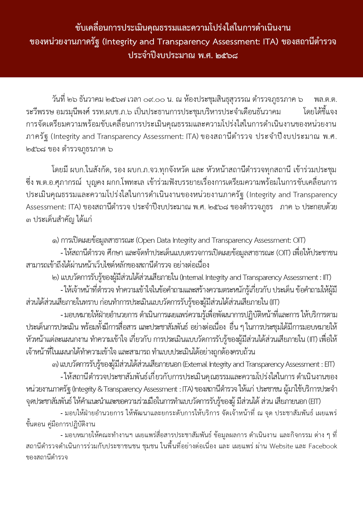 ประชุมบริหาร เดือน ธันวาคม 67