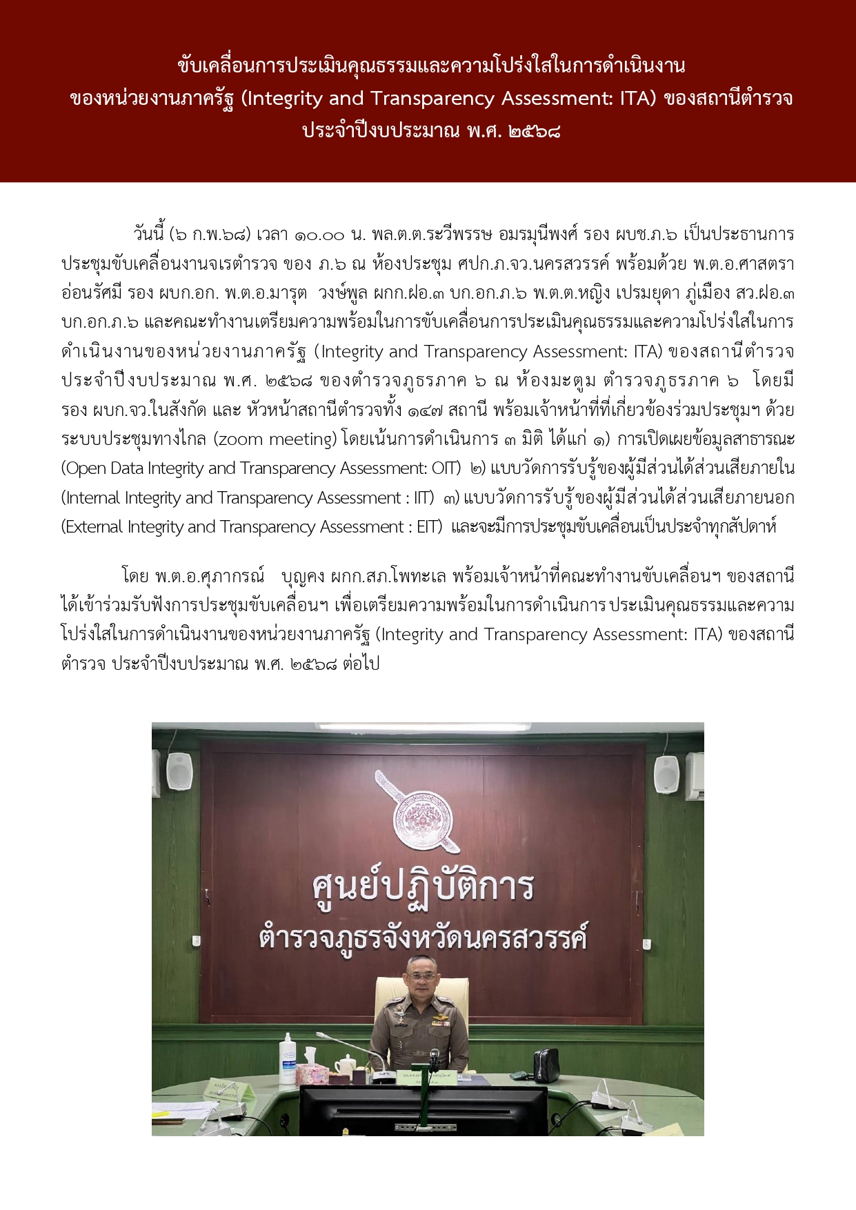 เมื่อวันที่ 24 มกราคม 2568 เวลา 09.00 – 11.30 น.อำนวยการโดย พ.ต.อ.ศุภากรณ์ บุญคง ผกก.สภ.โพทะ