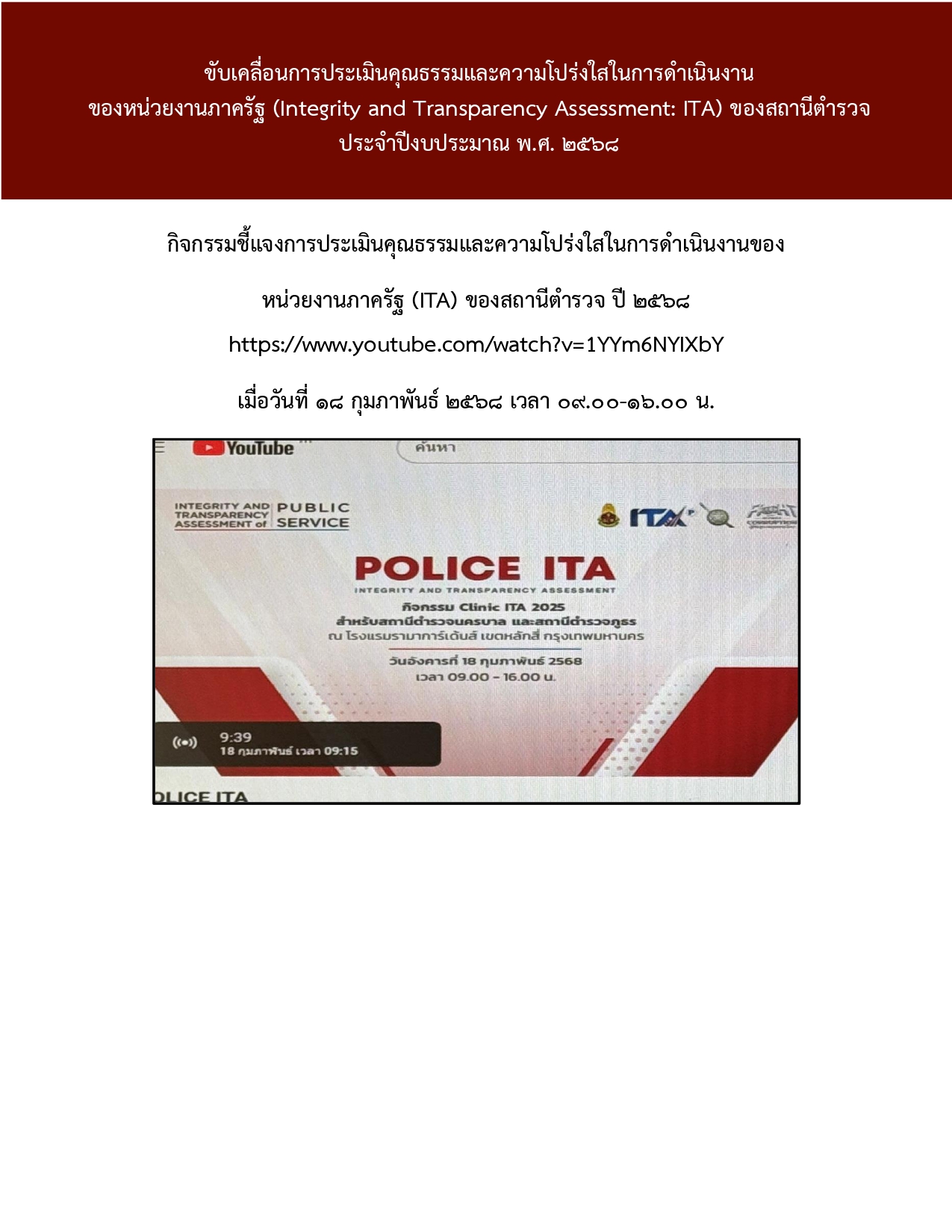 เมื่อวันที่ 18 มีนาคม 2568 เวลา 09.00 – 11.30 น. อำนวยการโดย โดย พ.ต.อ.วิเชียร ตรีอุดม ผ